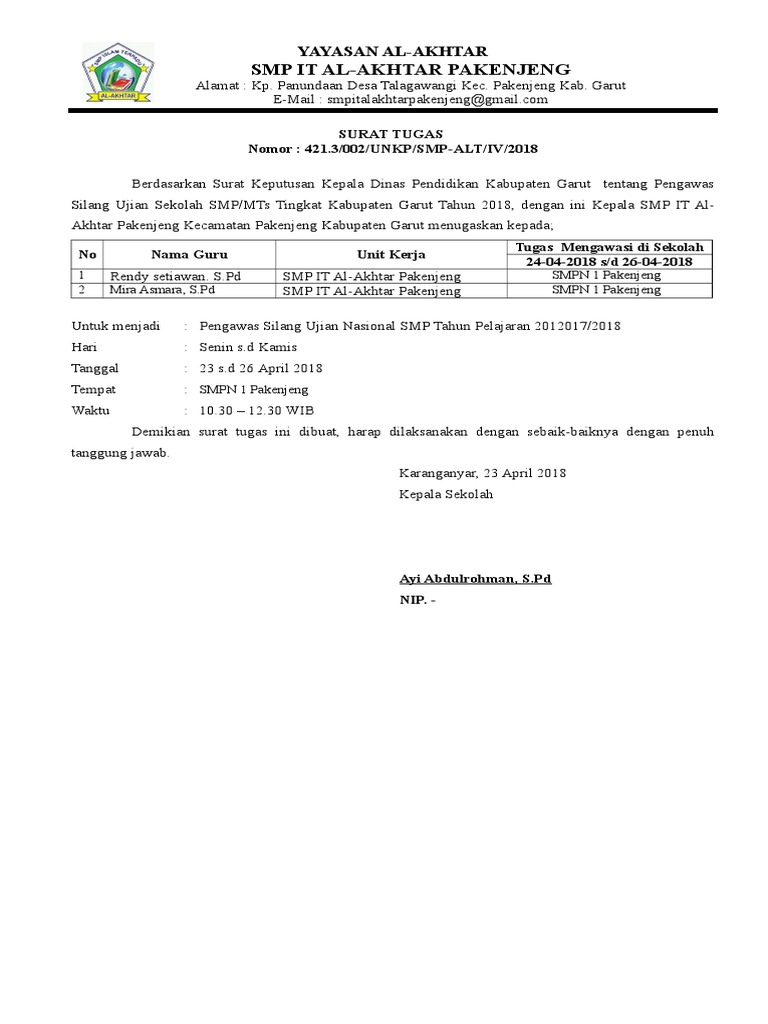 Contoh Surat Kiprah Pengawas Silang Ujian Nasional Sch Paperplane